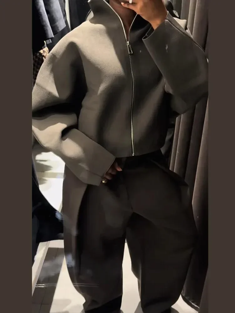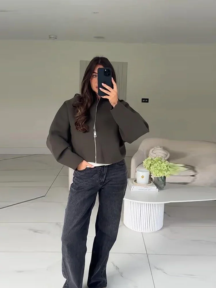 Casual Solid Stand Collar Short Jacket Women